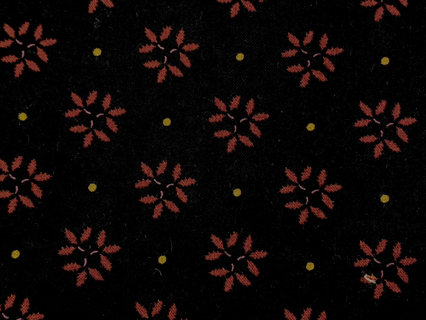 黒地のプリントです。エンジのリーフが上品な雰囲気を醸し出しています。パッチワーク、インテリア雑貨など、幅広く使っていただけます。色違いに茶系があります。
